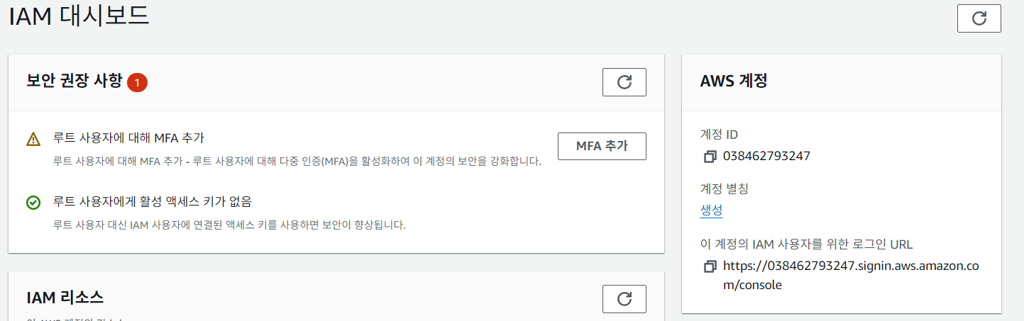 루트 사용자란 회원 가입시 자동으로 생성되는 계정으로 모든 AWS 권한을 갖고 있는 계정이다.