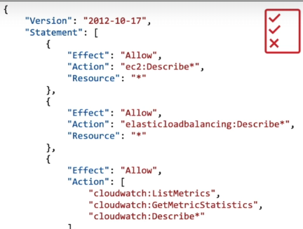권한 부여 방식은 사용자 또는 그룹에게 정책, 또는 IAM 정책이라 불리는 JSON 파일을 할당하는 것이다.