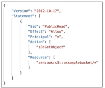 - 위의 정책은 examplebucket 안의 모든 객체에 접근을 허용하고 있다.