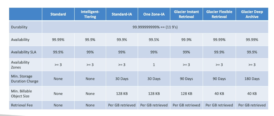 - S3 Standard - 99.99%의 가용성 = 연간 53분 정도 서비스를 이용할 때 에러가 생긴다는 의미