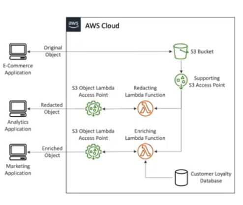 - 람다 액세스 포인트를 통해 데이터를 요청하면 S3 는 해당 객체를 람다 함수로 전달하여 결과를 반환한다.