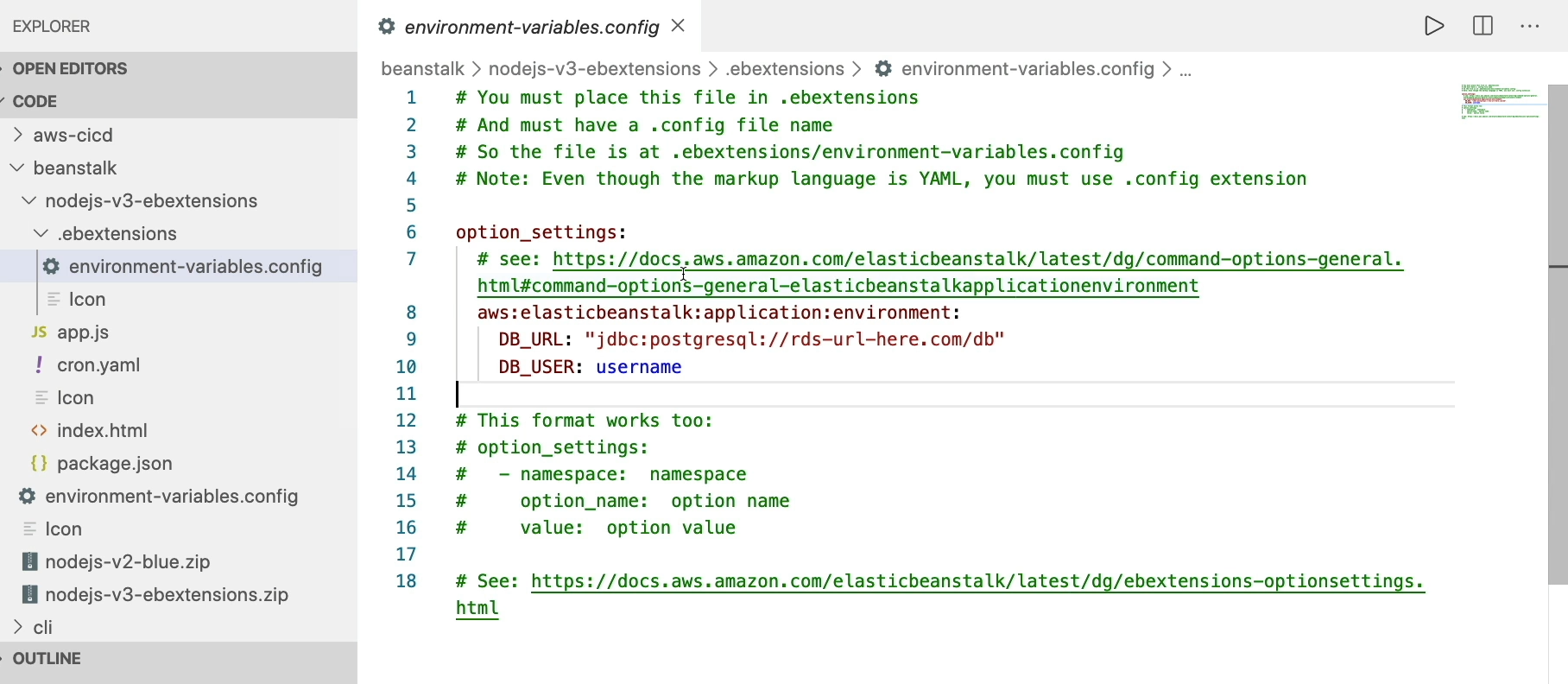 - 모든 설정파일이 ,ebextensions/라는 폴더에 들어가야 한다.