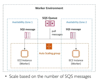 SQS message의 메세지를 EC2에서 가져가 처리한다. - 큐의 메세지 수에 따라 자동으로 스케일링 된다.