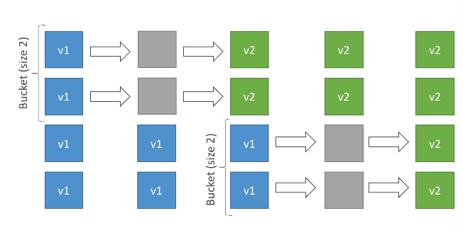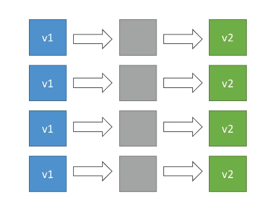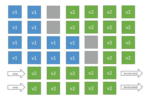 서비스가 잠시 중지되어 다운타임이 발생한다. - Rolling - 버킷이라는 인스턴스 묶음 단위로 동시에 업데이트하고, 첫 번째 버킷의 상태가 괜찮으면
