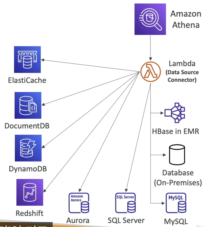 - 연합 쿼리 기능이다. S3 뿐만 아니라 모든 곳에서 데이터 쿼리가 가능하다.