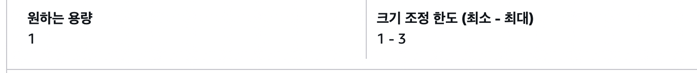 - 우선 시작 용량은 1로 설정했다. 회원 모집 기간 이외에는 트래픽이 많이 몰리지 않을 것이기 때문이다.