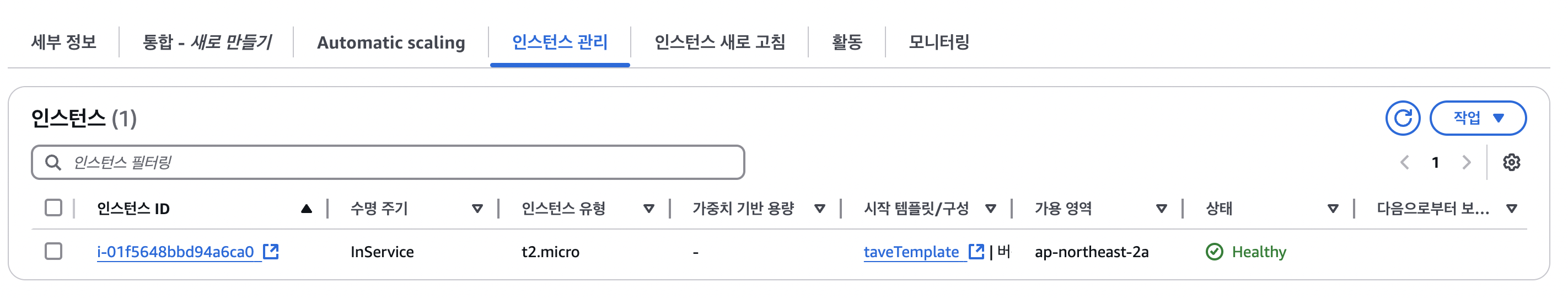 - 기존 인스턴스가 1개인 상황에서 롤링 업데이트가 이뤄졌다.