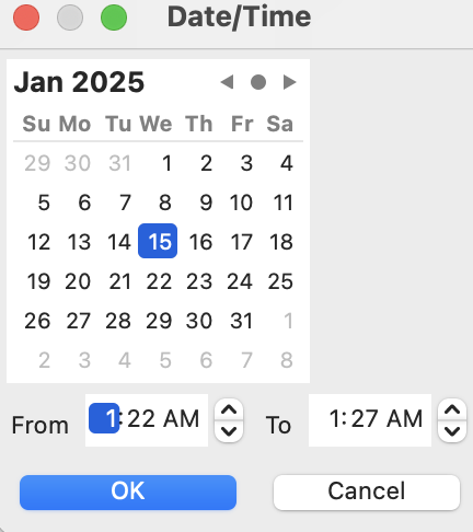 - 여기서 원하는 날짜와 시간을 입력하면 된다.