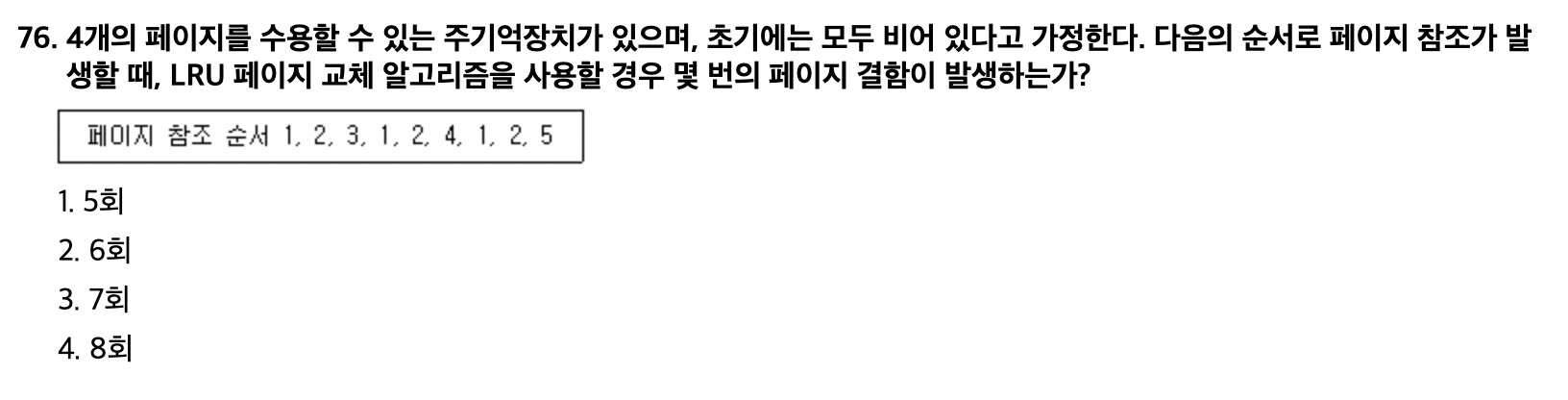 - LRU - Least Recently Used : 가장 오랫동안 사용되지 않은 페이지 교체