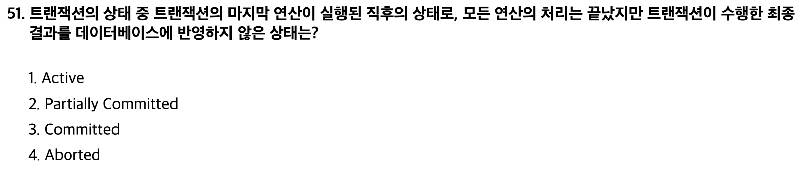 Partially Committed: 마지막 연산이 실행된 직후의 상태로 아직 Commit 연산 실행 전