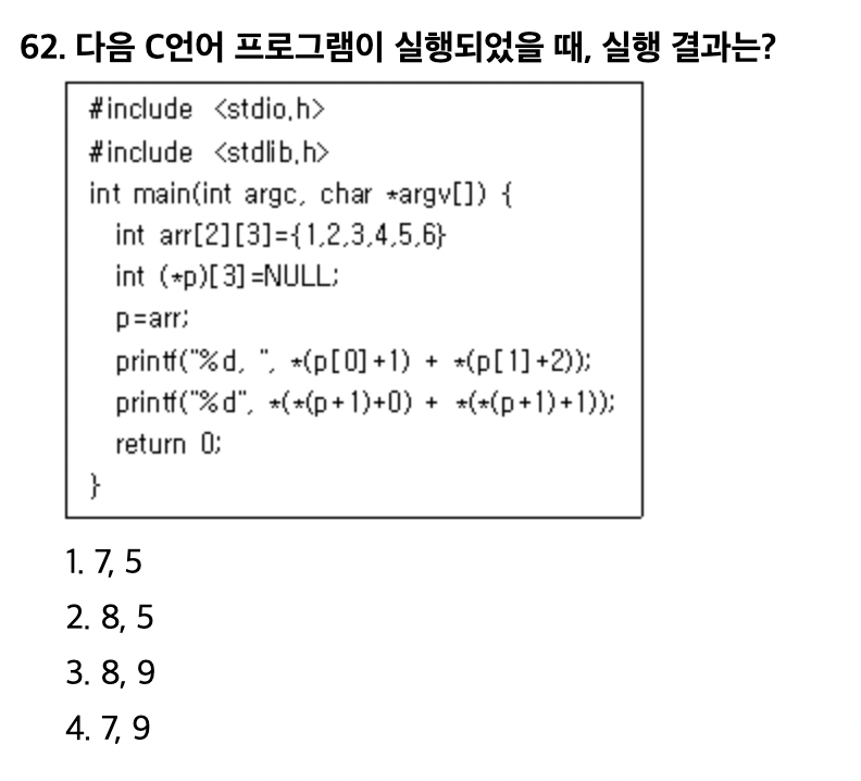 *(*(p+1)+1는 [1][1] 와 같다 [1][1]에 들어 있는 숫자는 '5'이다. 4+5= 9