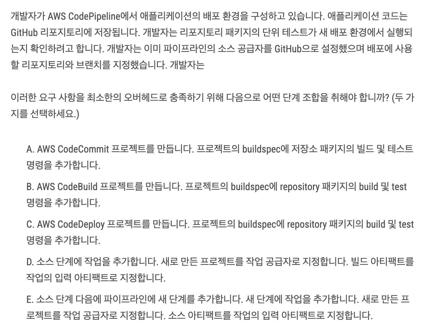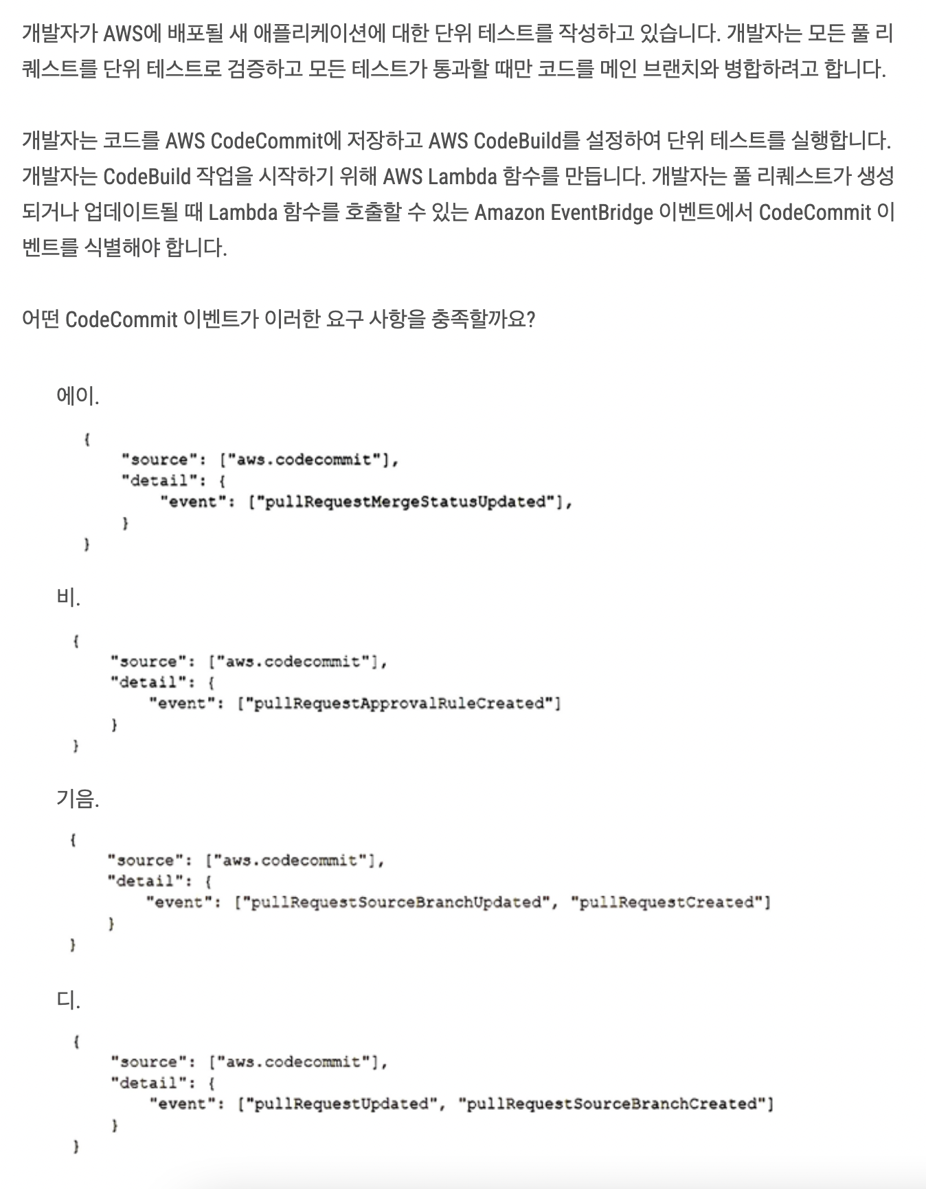| [AWS Certified Developer - Associate] 문제 정리 - 2 (0) | 2025.02.22 |