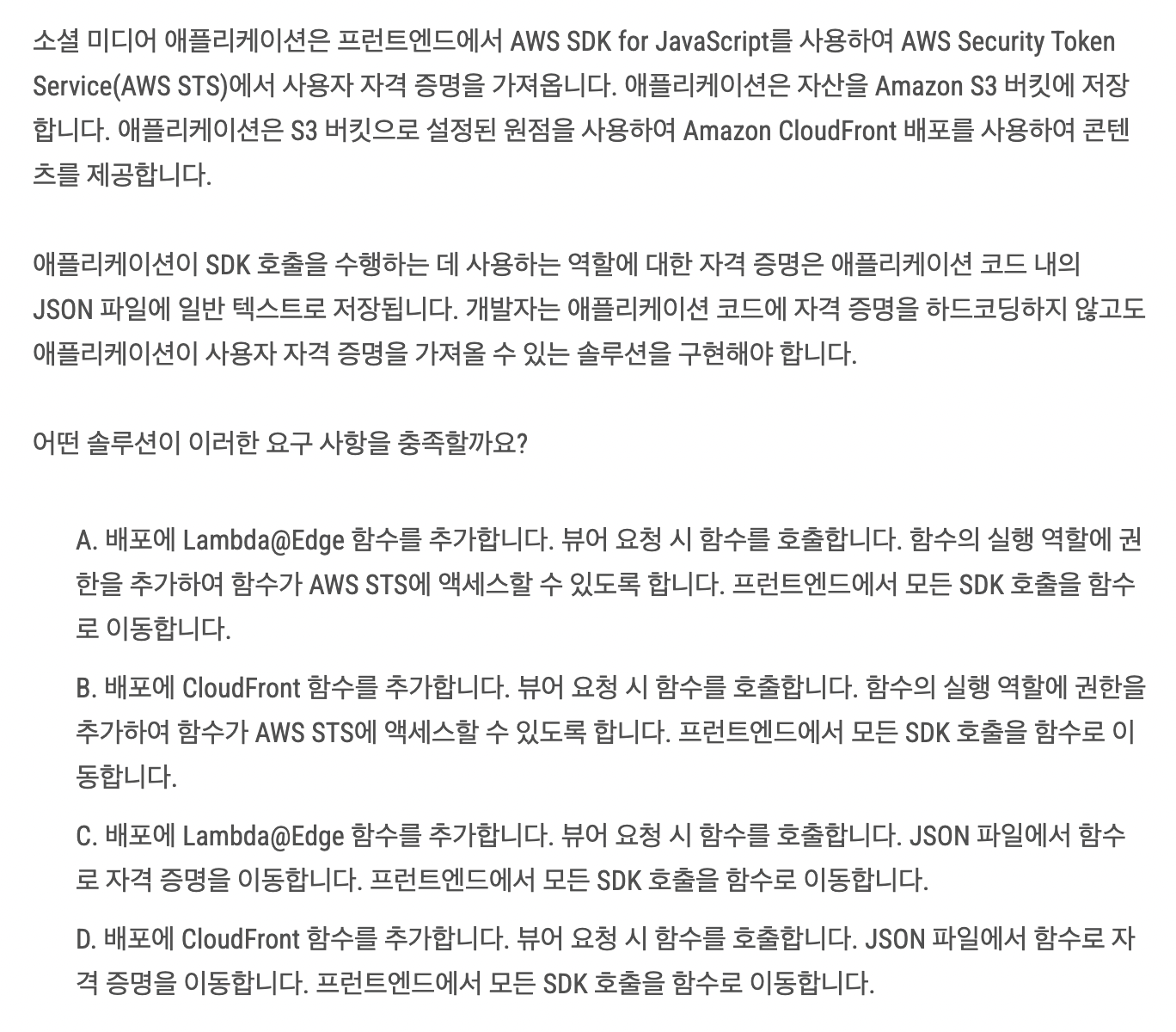 | [AWS Certified Developer - Associate] 문제 정리 - 4 (0) | 2025.02.24 |