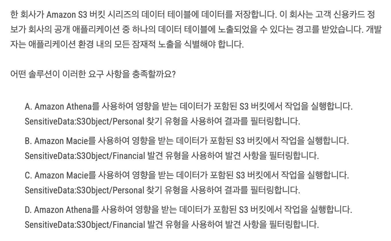 Macie는 s3에 민감한 데이터가 들어왔을 경우, 이벤트 트리거를 발동시켜 알림을 주는 기능이다.