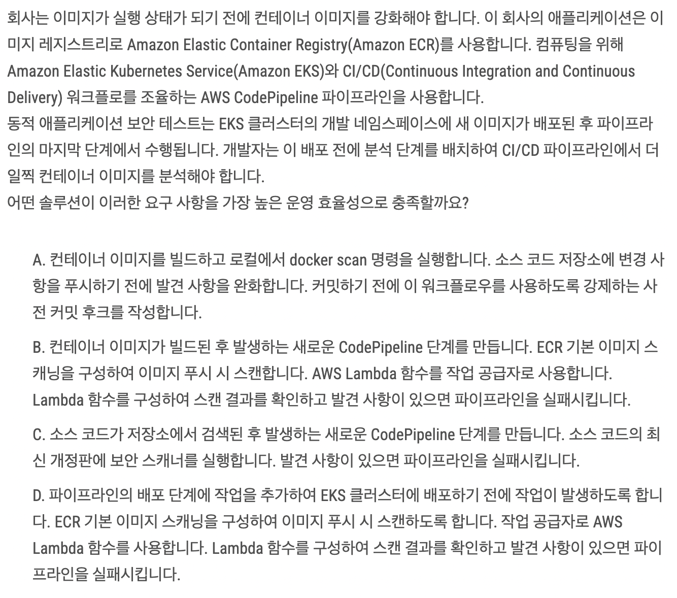 B,D의 차이점은 이미지 푸시 시에 검사하느냐, 배포 전에 검사하느냐의 차이다.