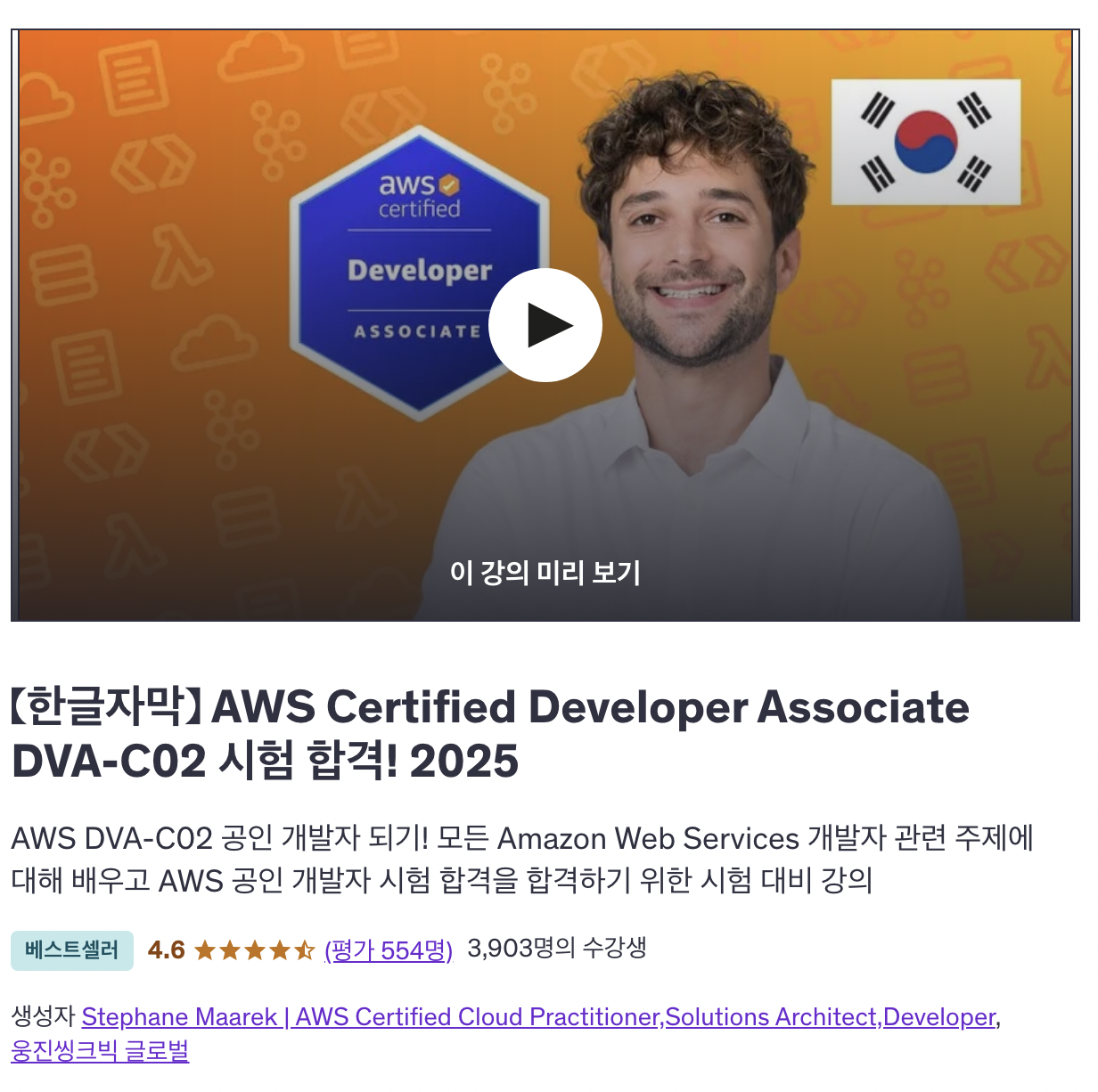 나는 운영보다는 개발쪽에 더 관심이 있으니 AWS Certified Developer - Assoicate 자격증을 따는 걸로 결심했다!