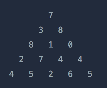 | [[7], [3, 8], [8, 1, 0], [2, 7, 4, 4], [4, 5, 2, 6, 5]] | 30 |