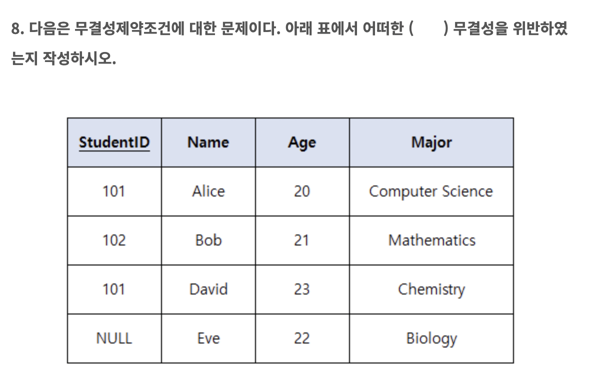 - 각 릴레이션의 기본키를 구성하는 속성은 널(NULL) 값이나 중복된 값을 가질 수 없습니다.