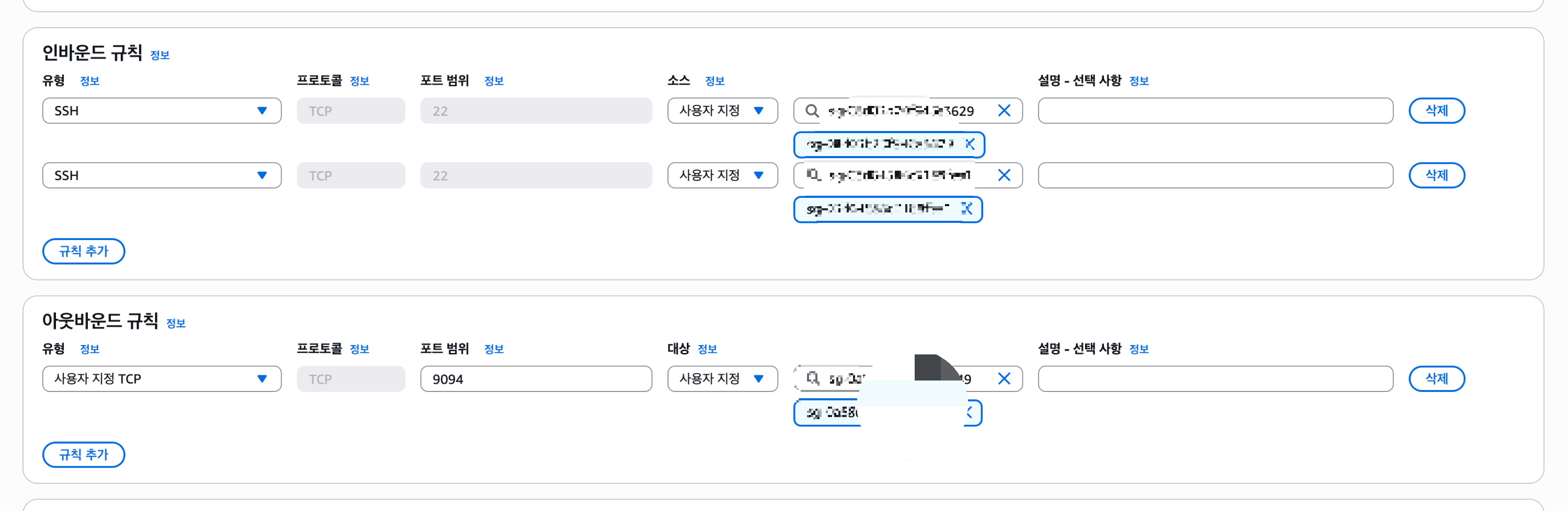 저는 private 서브넷에 배포했고 ssh만 열어뒀어요 어차피 로그만 발송하는 서버라서 요청 들어올 일도 없고 아웃 바운드만 9094 카프카랑 cloudwatch 발송 가능하게 열어줬습니다.