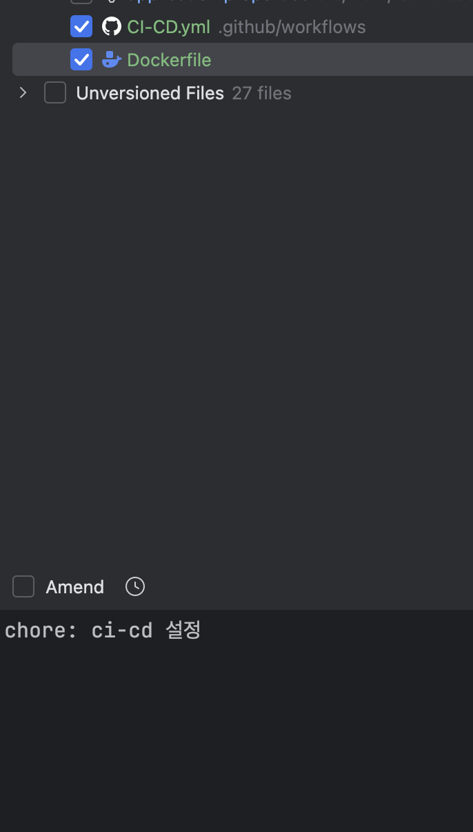 아까 만든 ci-cd 파일이랑, 도커 파일 푸시 합시다. 이거 넣으면 바로 깃허브 액션 실행될 거에요