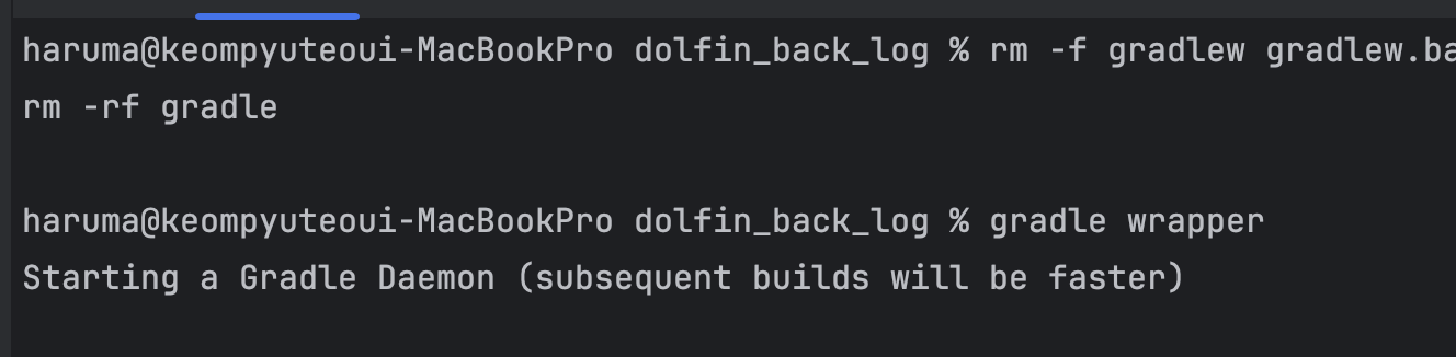 다시 gradle wrapper 실행해서 빌드 관련 파일 전부 다시 실행시켜 줬습니다.