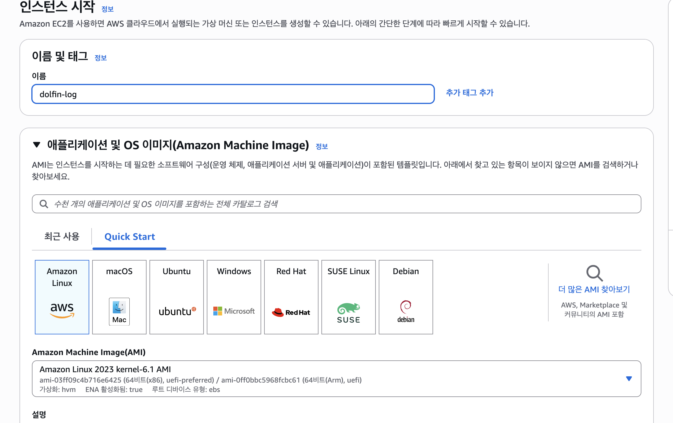 리눅스 기반으로 aws ec2 최적화 시켜서 만들어진 운영체제입니다 이거 쓰는 걸 추천 해여