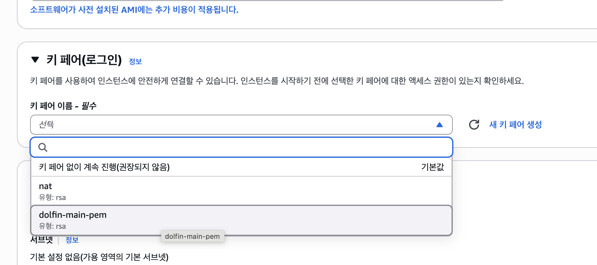 키 만들어주세요, 서버 접속할 때 이 pem 키 사용해서만 접속 가능하게 제어할 수 있습니다.