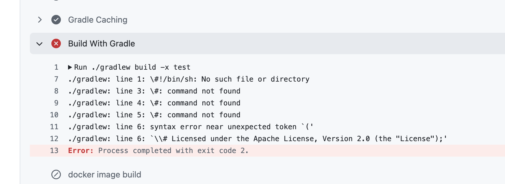 이런 젠장 에러가 났군요, 에러를 살펴보니 gradlew 파일의 형식이 다른 거 같습니다.