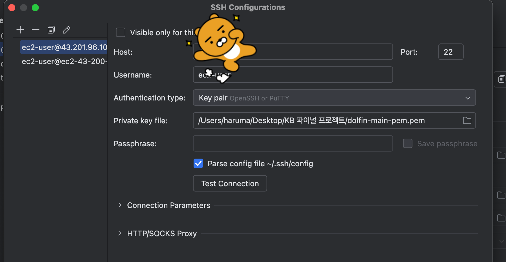 use SSH tennel 클릭해주고, ssl configuration 오른쪽 ... 클릭해주세요