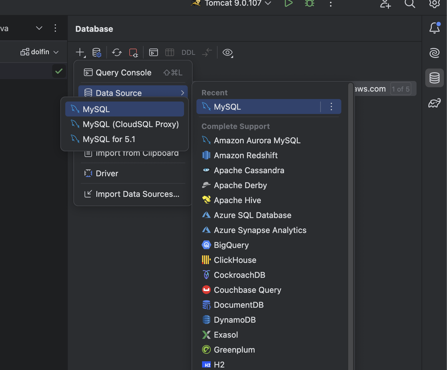 우선 인텔리제이에서 mysql 데이터 소스 생성하자