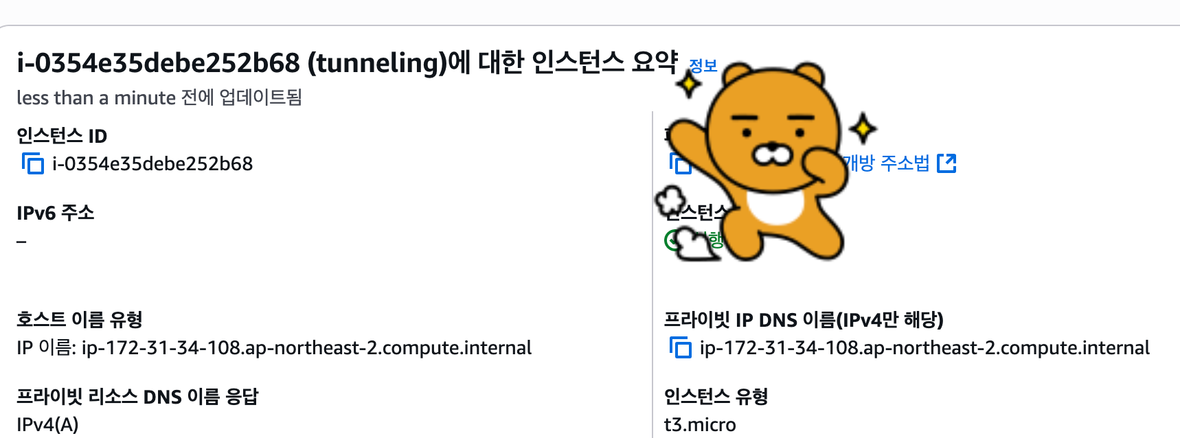 다음 퍼블릭 주소를 확인하고 터널링 서버에 접속하기 위한 pem키를 이용해