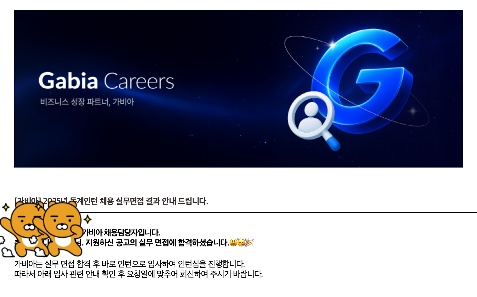 예이후 ~~ 여기 저기 면접 보러 다니고 나서 편안하게 기다리고 있다가 합격 메일을 받았습니다.