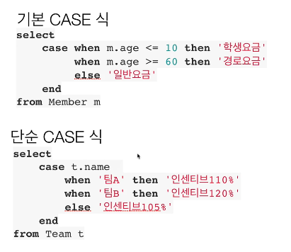 - 엔티티 타입: TYPE(m) = Member (상속 관계에서 사용, 상속 관계에서 자식 클래스의 타입을 지정하기 위함)