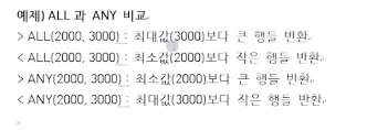 < ALL (최소값을 반환한다.), > ALL (최대값을 반환한다.)