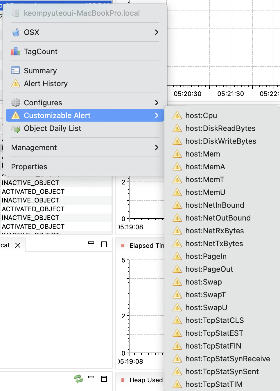 - 수집 서버를 선택하고 마우스 오른쪽 버튼을 눌러 Customizeable Alert 메뉴를 찾으면
